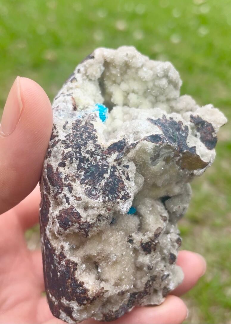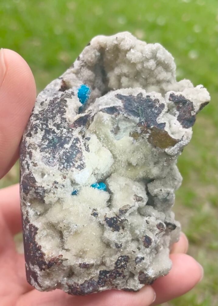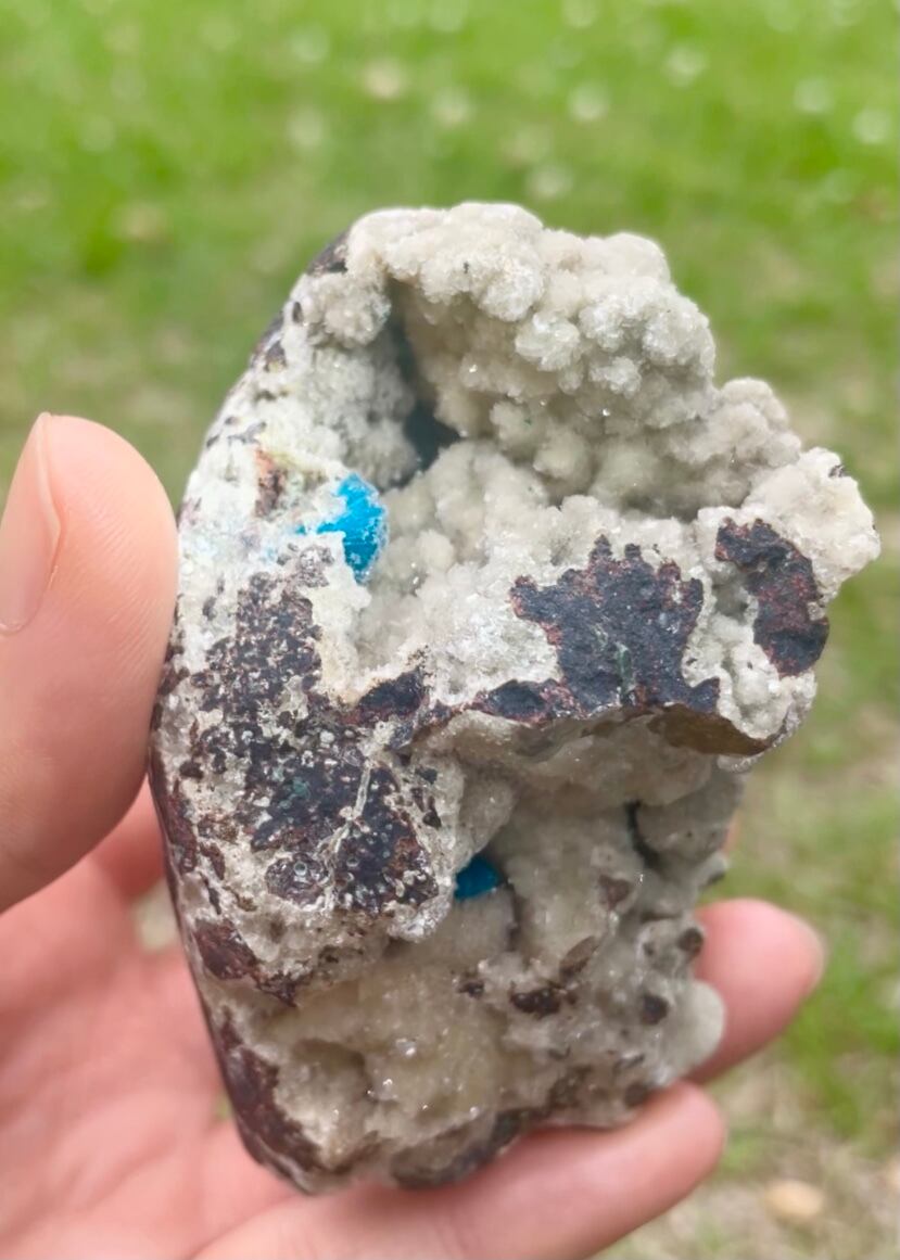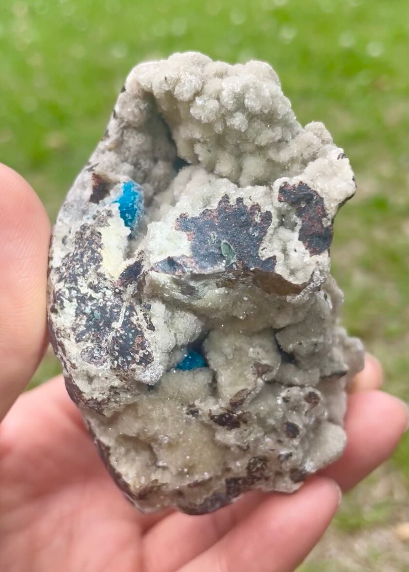 カバンサイトの結晶を大切に抱え込む母岩石がなんとも魅力的です。